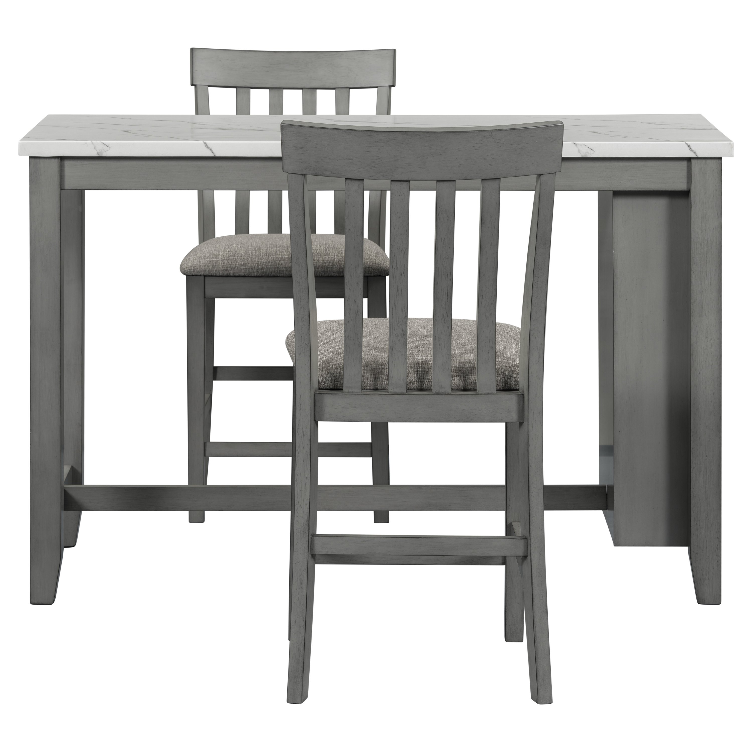 Crafted from quality materials and ergonomic design, this counter height table set with a faux marble dining table and 2 upholstered counter height chairs is comfortable to be seated and splendent appearance to enjoy, solid and durable for you to trust. The table set comes in an elegant and clean-outlined appearance, makes you to share every happy time with your family and friends. The suitable size dining table is absolutely perfect to be placed in your kitchen and dining room.