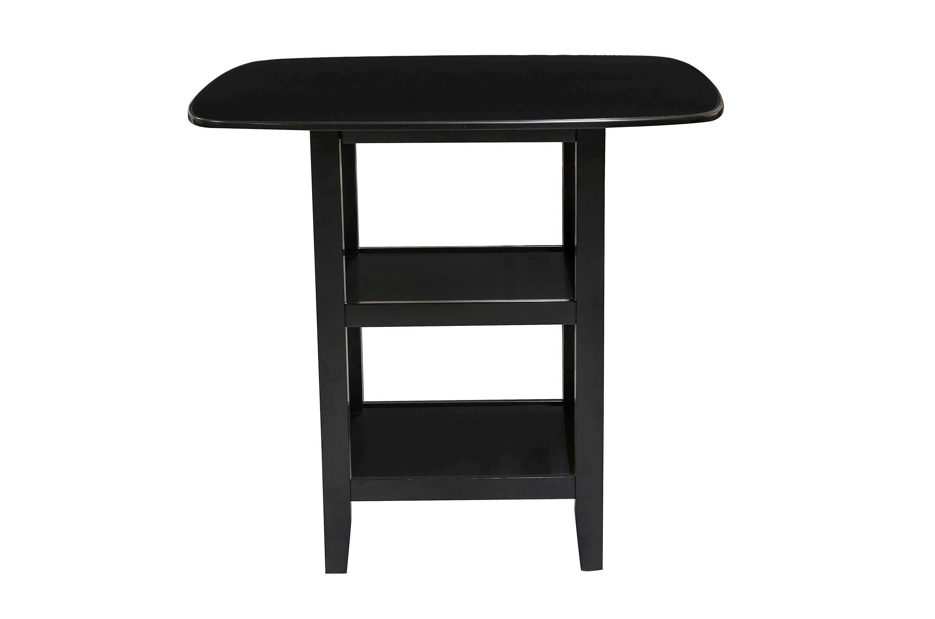 Perfectly scaled for a cozy dining area is the Norman Collection. The counter height table features double display shelves, providing ample storage and display space. Each chair, in this five-piece dining offering, has a double X-back design that lends a transitional feel. The black finish compliments the casual feel of this offering.PRODUCT DIMENSIONS: TABLE: 39" x 39" x 36.5"HApron to floor: 34.5"Shelf interior: 19" x 19" x 10"(1),19" x 19" x 13.5"(1)CHAIR: 18.5" x 20.5" x 40"HSeat Width: 18.5"Seat Depth: 16"Seat Height: 25.5"Listing Includes: 5pc Dining Set (1 Counter Height Table and 4x Counter Height Chairs) Only.Simple Assembly Require.