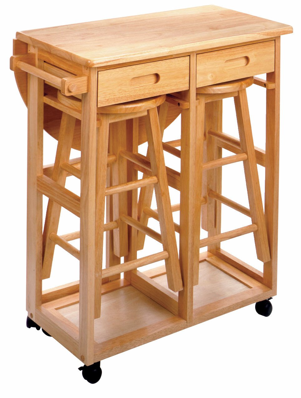 The table has wheels giving it great mobility while the expandable drop leaf and stool storage provides great functionality.