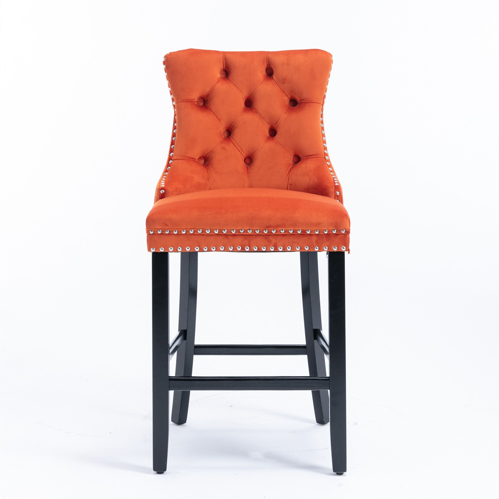 Contemporary Velvet Upholstered Barstools with Button Tufted Decoration and Wooden Legs, and Chrome Nailhead Trim, Leisure Style Bar Chairs,Bar stools Contemporary Velvet Upholstered Barstools with Button Tufted Decoration and Wooden Legs, and Chrome Nailhead Trim, Leisure Style Bar Chairs,Bar stools Contemporary Velvet Upholstered Barstools with Button Tufted Decoration and Wooden Legs, and Chrome Nailhead Trim, Leisure Style Bar Chairs,Bar stools
