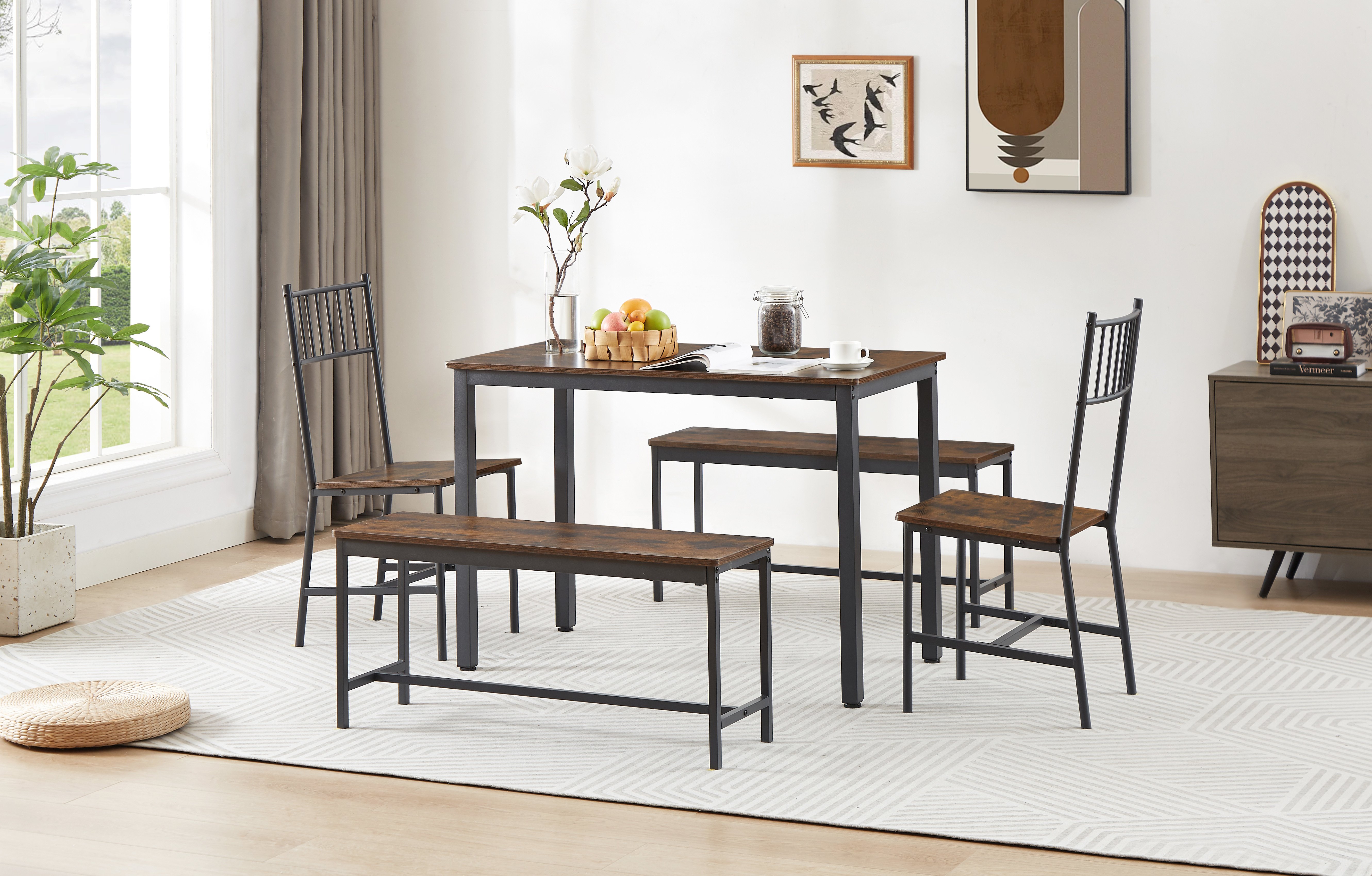 > Dining Table Set, Barstool Dining Table with 2 Benches 2 Back Chairs, Industrial Dining Table for Kitchen Breakfast Table, Living Room, Party Room