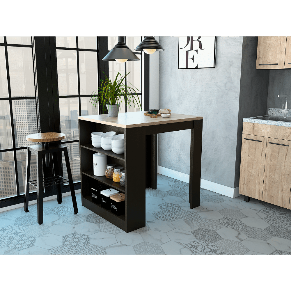Elkins 3-Drawer Kitchen Island Black Wengue and Pine