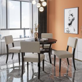 5-Piece Kitchen Dining Table Set Round Table with Bottom Shelf, 4 Upholstered Chairs for Dining Room(Espresso)