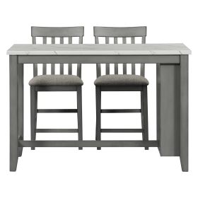 3-piece Counter Height Dining Table Set with Built-in Storage Shelves, One Faux Marble Top Dining Table and 2 counter chairs with footrest,Grey