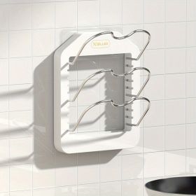 1pc Wall Mounted Pot Lid Rack; Free Punch Pot Cover Holder; Hanging Lid Organizer; Kitchen Accessories (Model: Three layer pot lid rack, Color: White)