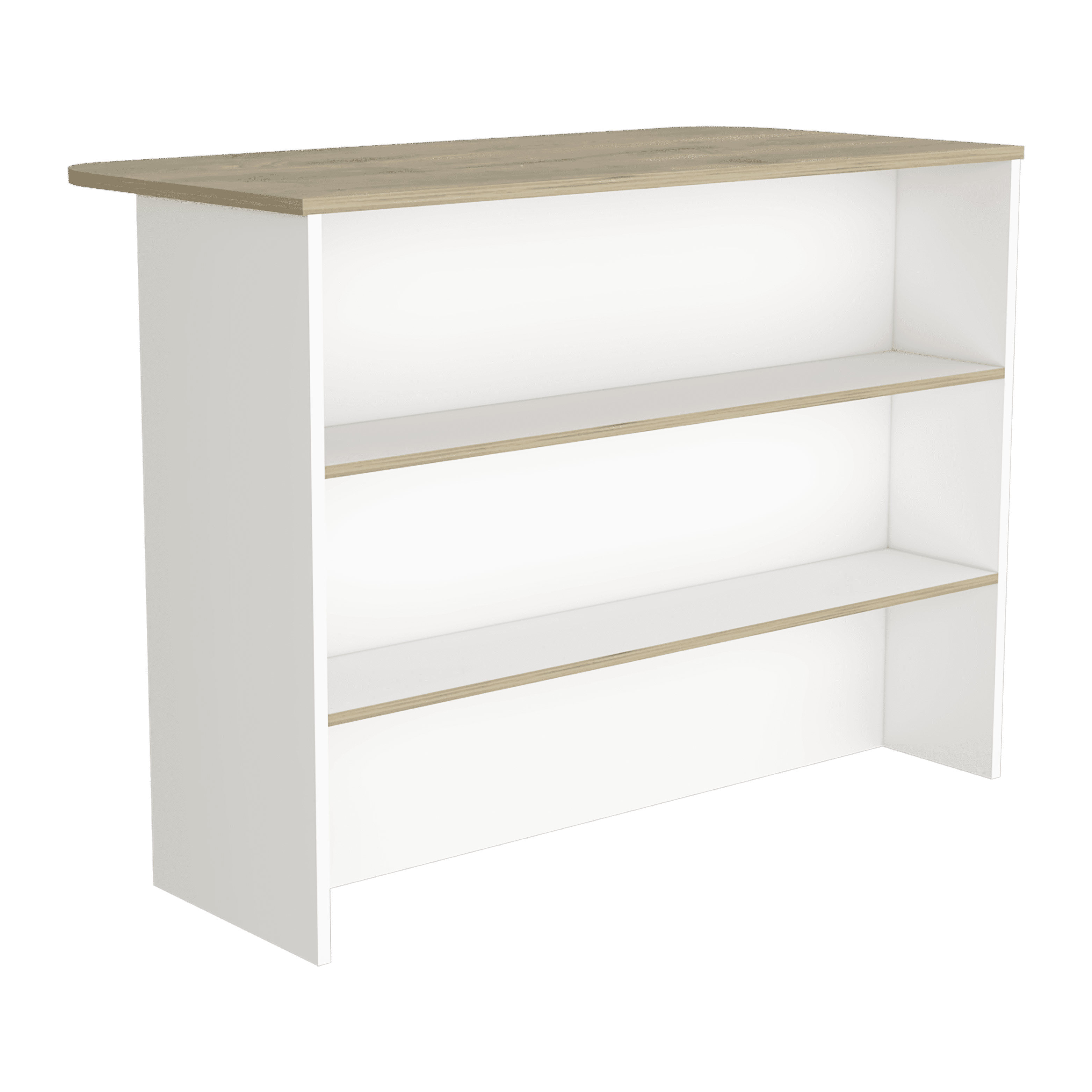 Elevate your culinary space with the Dayton Kitchen Bar, the embodiment of function and flair. Boasting a generous workstation measuring 47.2" W x 23.6" D, it's perfect for dining and preparation. The integrated two-tier shelves, sized 10.8" x 8.2", offer a handy spot for your essential spices or kitchen tools. Crafted with longevity in mind from premium manufactured wood, it showcases a white/light pine finish that seamlessly integrates with diverse kitchen aesthetics.Dimensions:Height: 35,4" Width: 47,2'Depth: 23,6'Furniture Type: Ready to assemble (full assembly required).Certifications: CARB phase II compliant – TSCA Title VI Compliant.Warranty: 1-year warranty coverage in wooden parts- 1-year warranty coverage in hardware pieces since its manufacturing date found in the lot number printed in the product box.