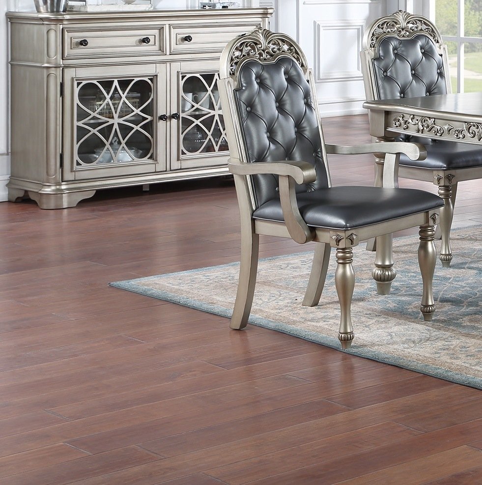 Majestic Formal Set of 2 Arm Chairs Grey / Silver Finish Rubberwood Dining Room Furniture Intricate Design Cushion Upholstered Seat Tufted Back Majestic Formal Set of 2 Arm Chairs Grey / Silver Finish Rubberwood Dining Room Furniture Intricate Design Cushion Upholstered Seat Tufted Back Majestic Formal Set of 2 Arm Chairs Grey / Silver Finish Rubberwood Dining Room Furniture Intricate Design Cushion Upholstered Seat Tufted Back
