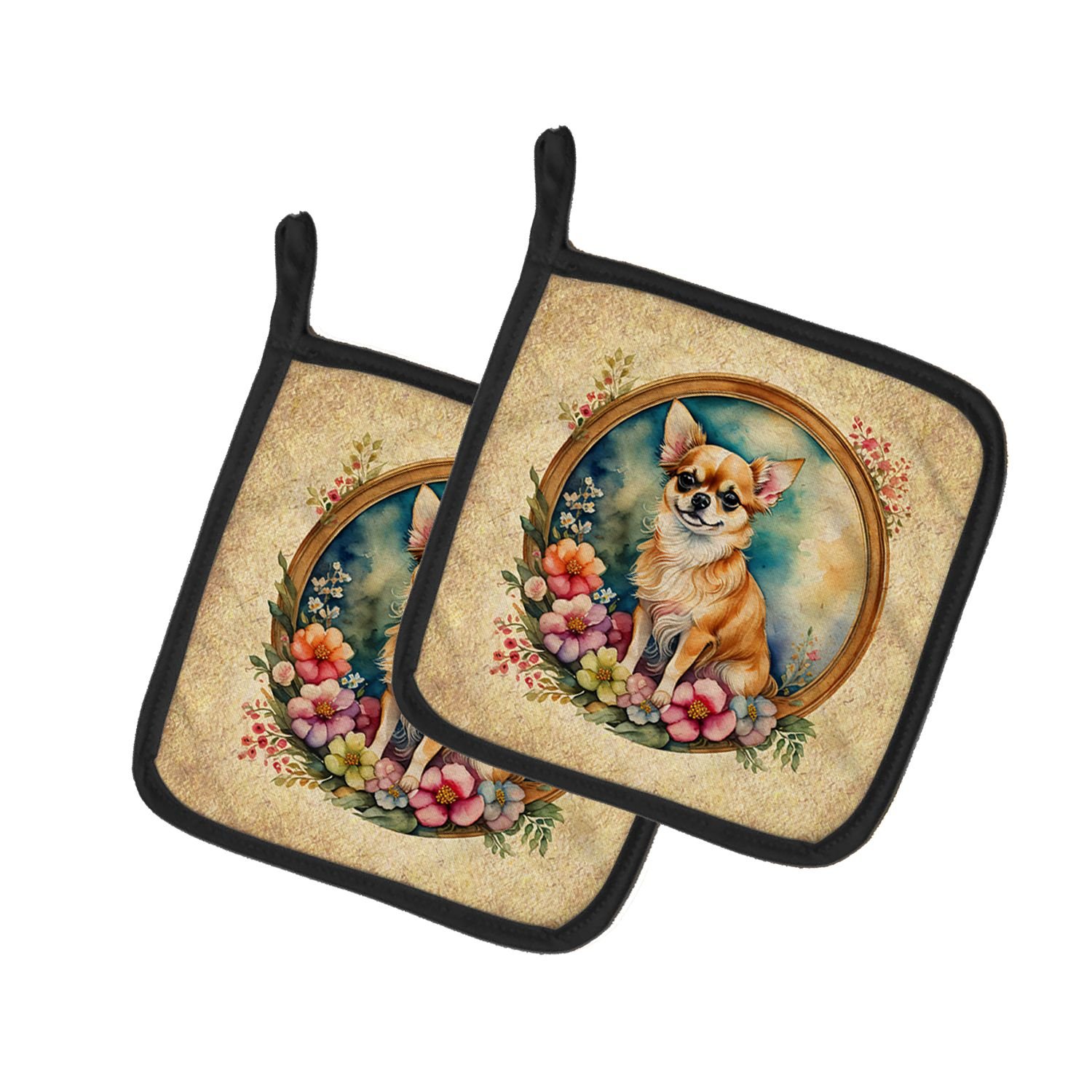 Home > Chihuahua and Flowers Pair of Pot Holders Kitchen Heat Resistant Pot Holders Sets Oven Hot Pads for Cooking Baking BBQ, 7 1/2 x 7 1/2