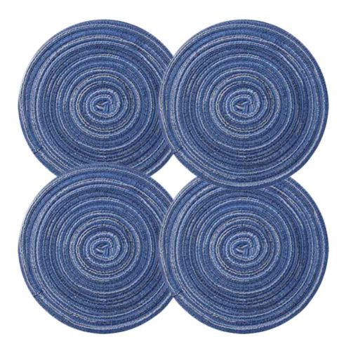 Home > 4 Pcs Woven Ramie Placemats Round Placemat Kitchen Accessories Home Decoration Table Mats Teapot Mats 7 inch, Blue