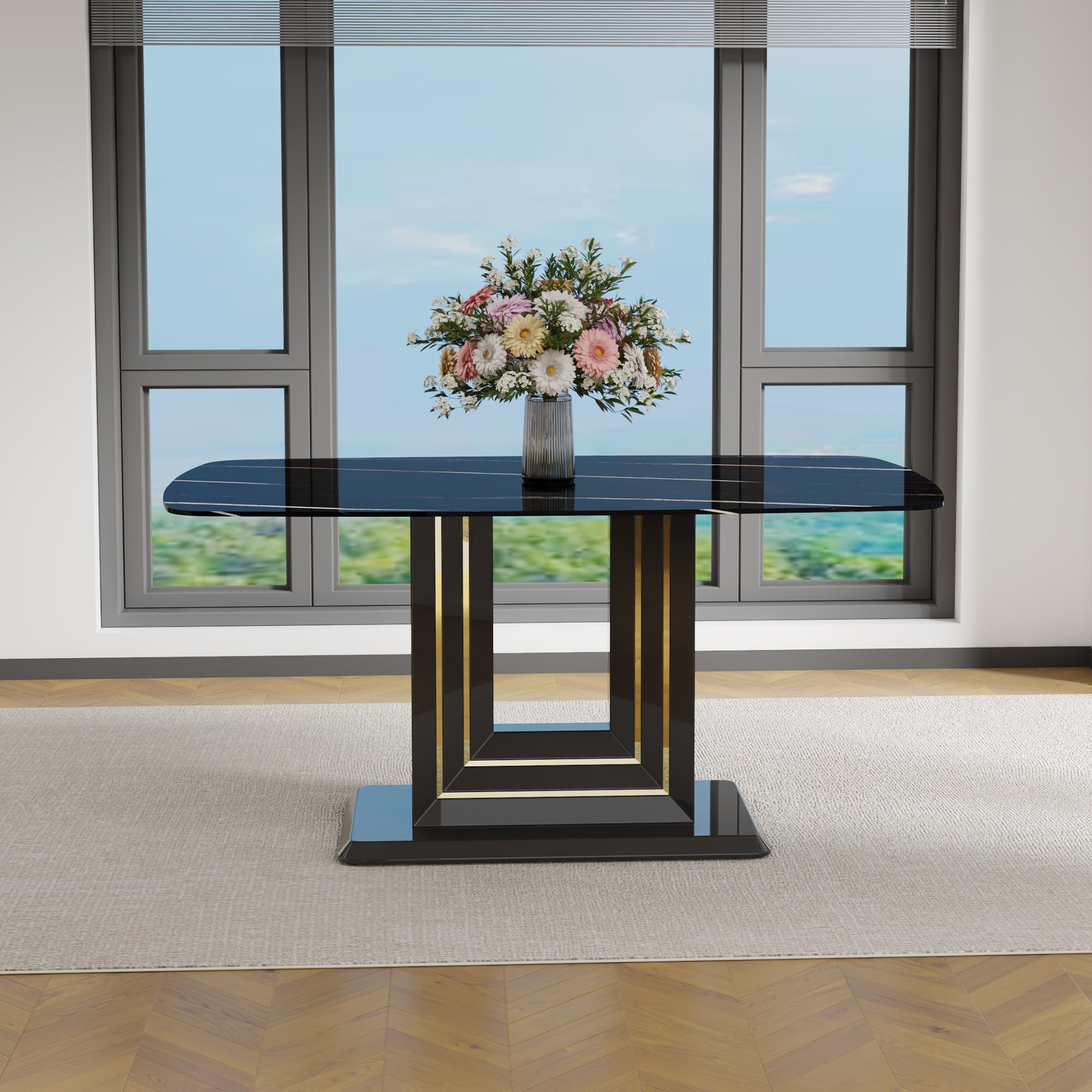 Luxurious & Modern Design: With a luxurious look and creative ultra-modern design, this beautiful large dinner table will fit perfectly with any home decor. The combination of faux marble top and U-shaped pedestal enhances the visual attractiveness of this marble dining table, making it simplistic but elegant, which is perfect for bringing an air of luxurious style to your kitchen or dining room.