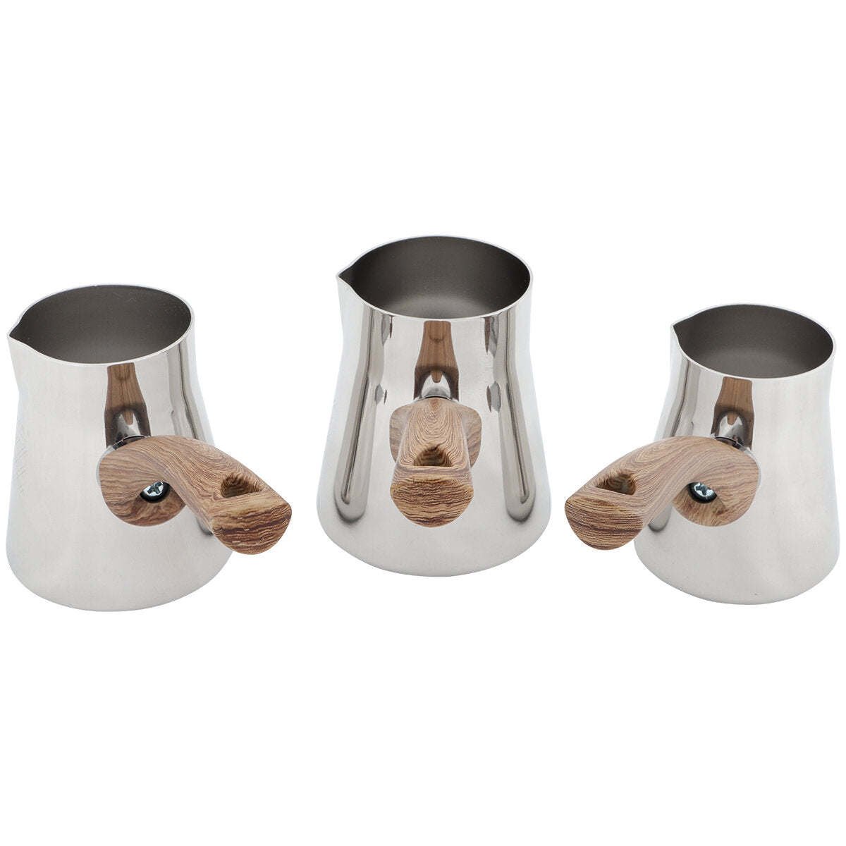 SERENK TURKISH COFFEE POT: Serenk Turkish Coffee Pot Set is made of heavy-duty 18/10 stainless-steel construction which exceedingly resistant to scratches, staining and will maintain its performance for a lifetime. Besides being durable, stainless steel is healthy, does not contain any toxic material, and is suitable for contact with food.