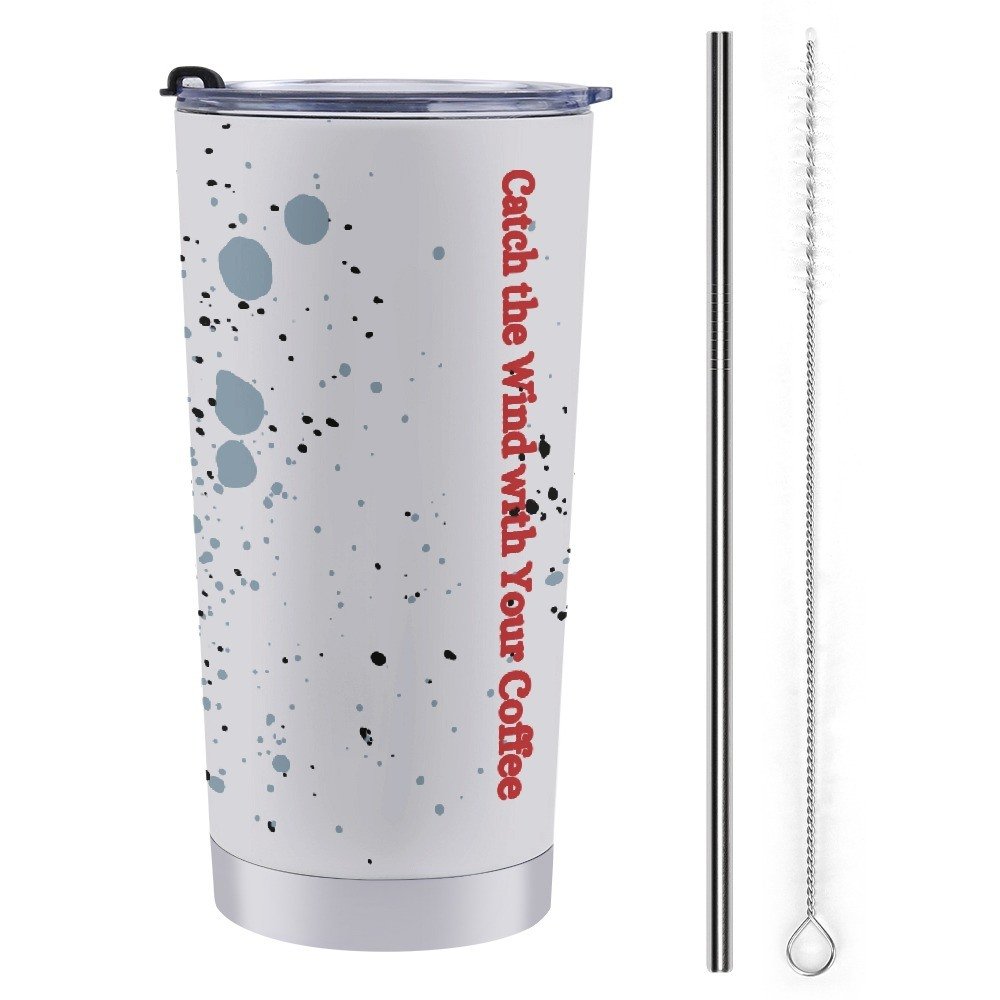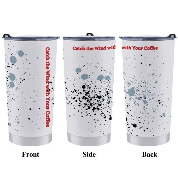 Let the wind carry your worries away as you enjoy your coffee from this stylish travel mug. The abstract design, featuring a graceful gull amidst swirling colors, captures the essence of freedom and adventure.A Touch of the Wild: