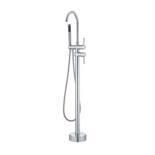 1.Glossy Surface Treatment: Our freestanding bathtub faucet features a polished finish for a touch of elegance. Crafted from durable stainless steel, it resists stains and is easy to clean. Key components are made of high-quality brass for durability, and the stable triangular base ensures it stands firmly. Plus, the square decorative cover adds style while keeping dust away. Elevate your bathroom effortlessly!